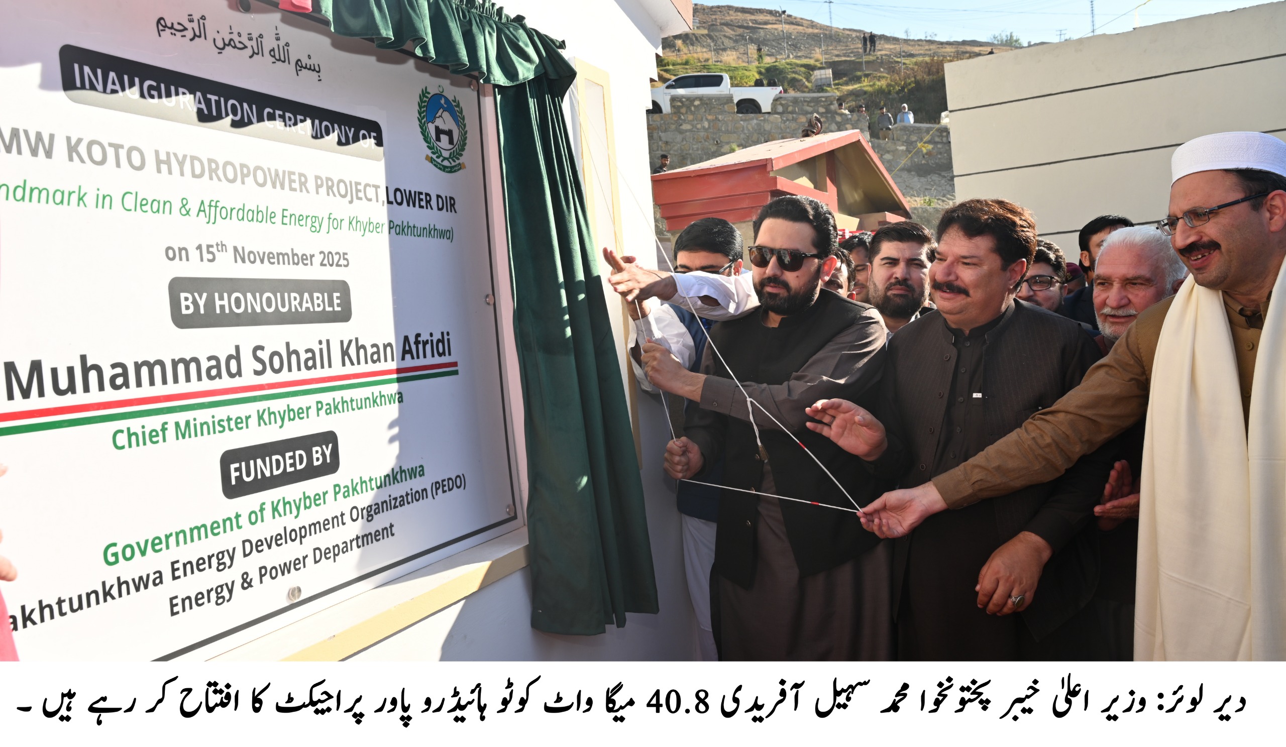 Chief Minister Khyber Pakhtunkhwa Muhammad Sohail Afridi while inaugurating the 40.8MW Koto hydropower project in Lower Dir.