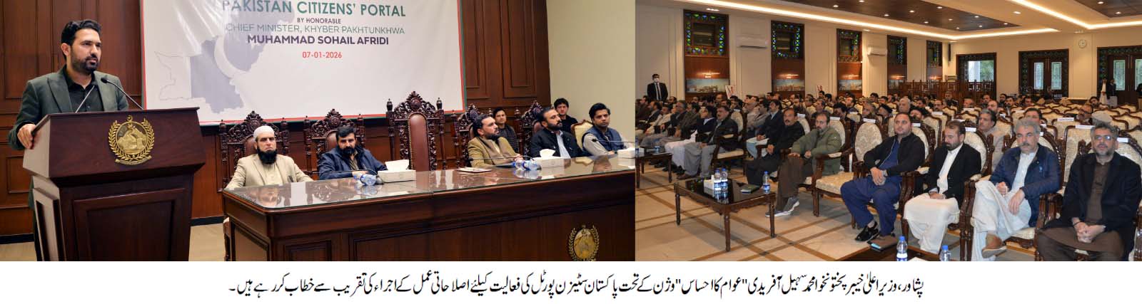 Chief Minister Khyber Pakhtunkhwa Muhammad Suhail Afridi while addressing the launching ceremony of the reform process for the functioning of the Pakistan Citizen Portal under the vision of "Awam Ka Ihsaas".