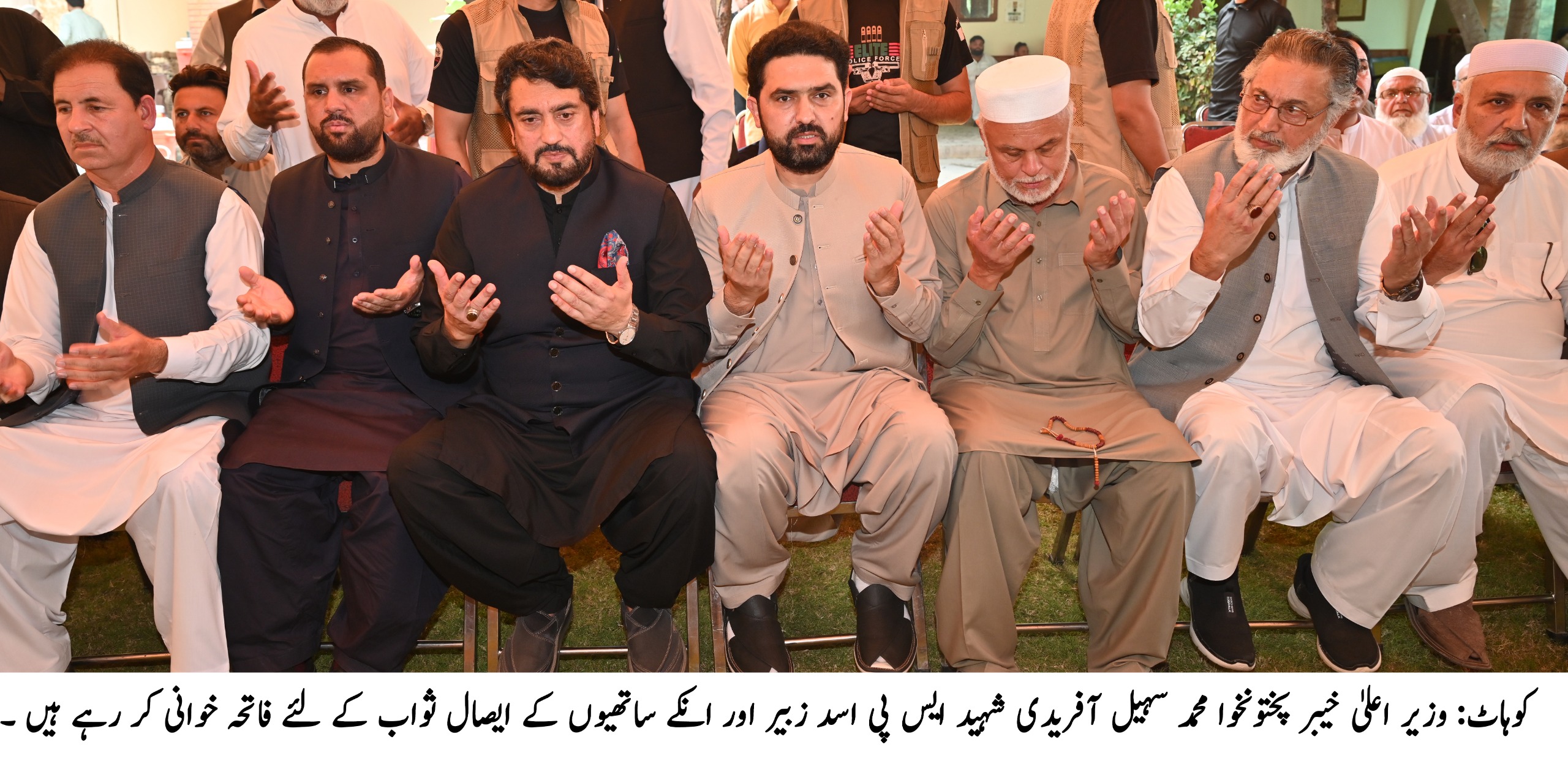 Chief Minister Khyber Pakhtunkhwa Muhammad Sohail Afridi offering Fateha for the departed soul of martyred SP Asad Zubair and his colleagues.
