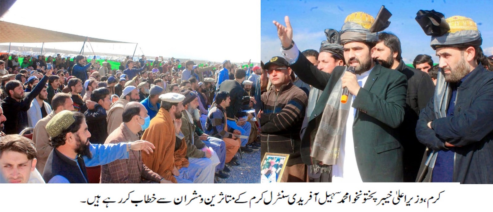 Chief Minister Khyber Pakhtunkhwa Muhammad Sohail Afridi while addressing the affectees and elders of District Kurram.